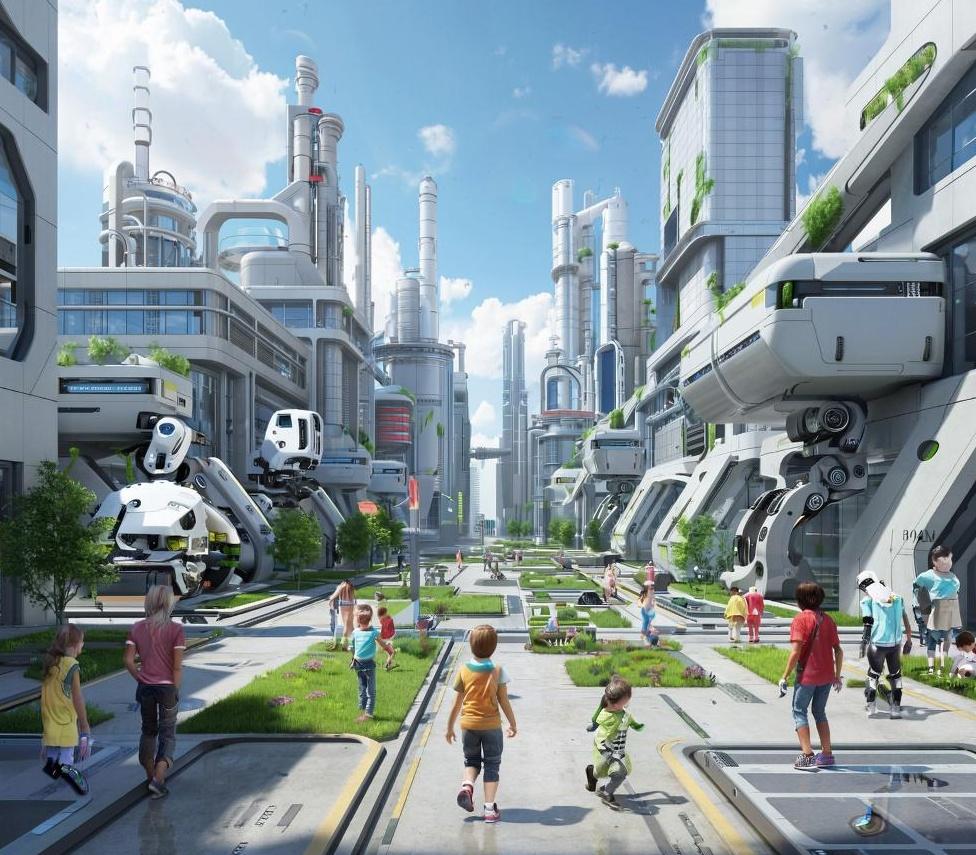 Представьте себе фабрики,которые больше похожи на научные лаборатории или IT-центры. Они работают автономно, управляются искусственным интеллектом и не наносят вреда окружающей среде. Производственные цеха становятся светлыми, тихими и безопасными пространствами, где люди работают бок о бок с роботами, выполняя творческие и управленческие задачи.